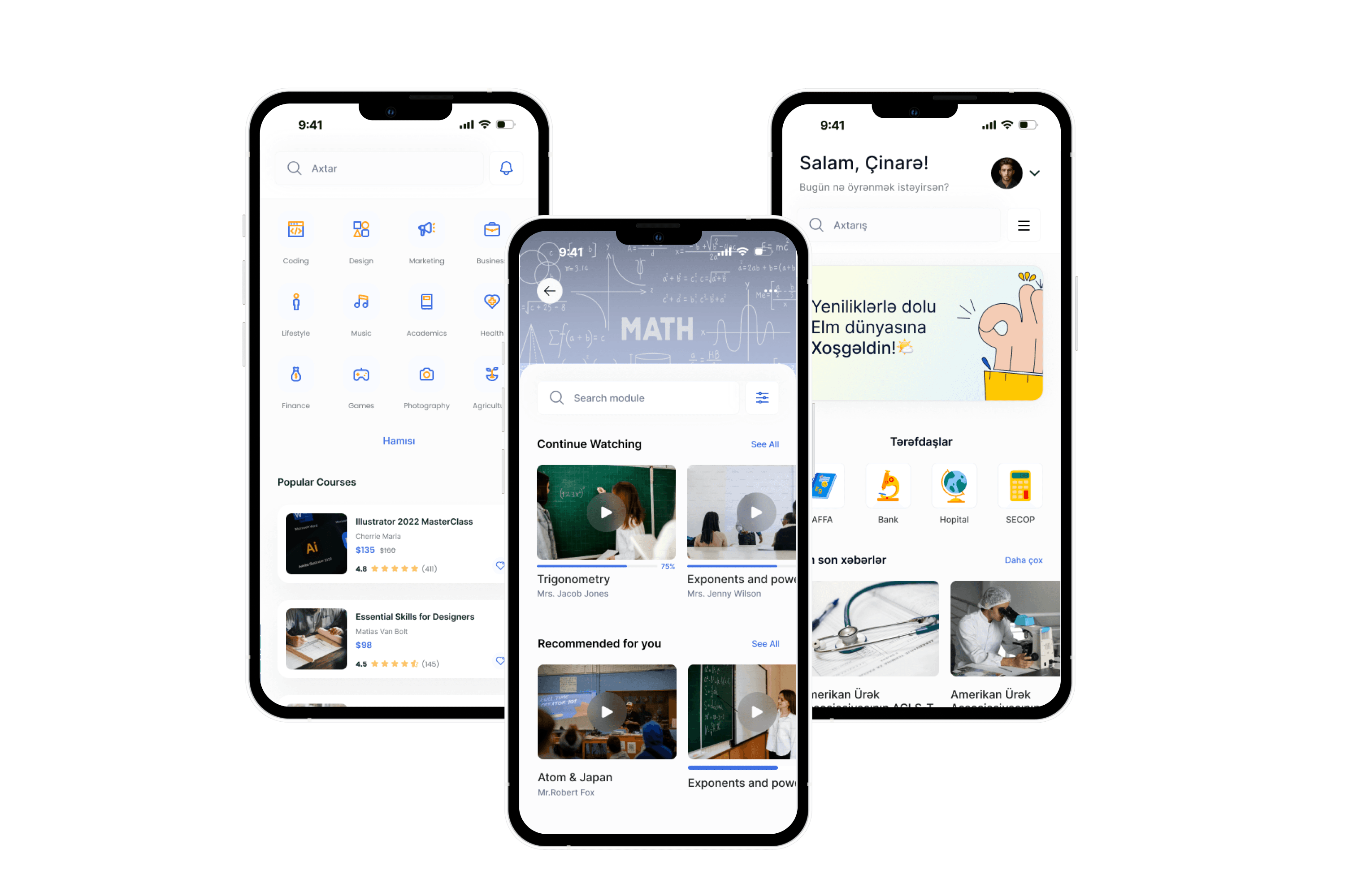 Services Provided:Əsas funksiyalar Müxtəlif sahələr üzrə onlayn kurslar (İT, tibb, iqtisadiyyat, mühəndislik və s.) Video mühazirələr və interaktiv təlim materialları Kurs bitirdikdə sertifikat alma imkanı Mobil tətbiq və veb portalla işləmə imkanı Üstünlükləri Peşəkar inkişaf üçün əlverişli platforma — ixtisaslaşmış kurslar var. Lokal (Azərbaycan) kontekstdə tədris məzmunu, yerli tələbələr üçün uyğunlaşdırılıb. İstifadəçi-dostu interfeys, mobil və veb versiyası mövcuddur. Sertifikatlarla kurs bitirmə imkanı karyera baxımından faydalıdır.